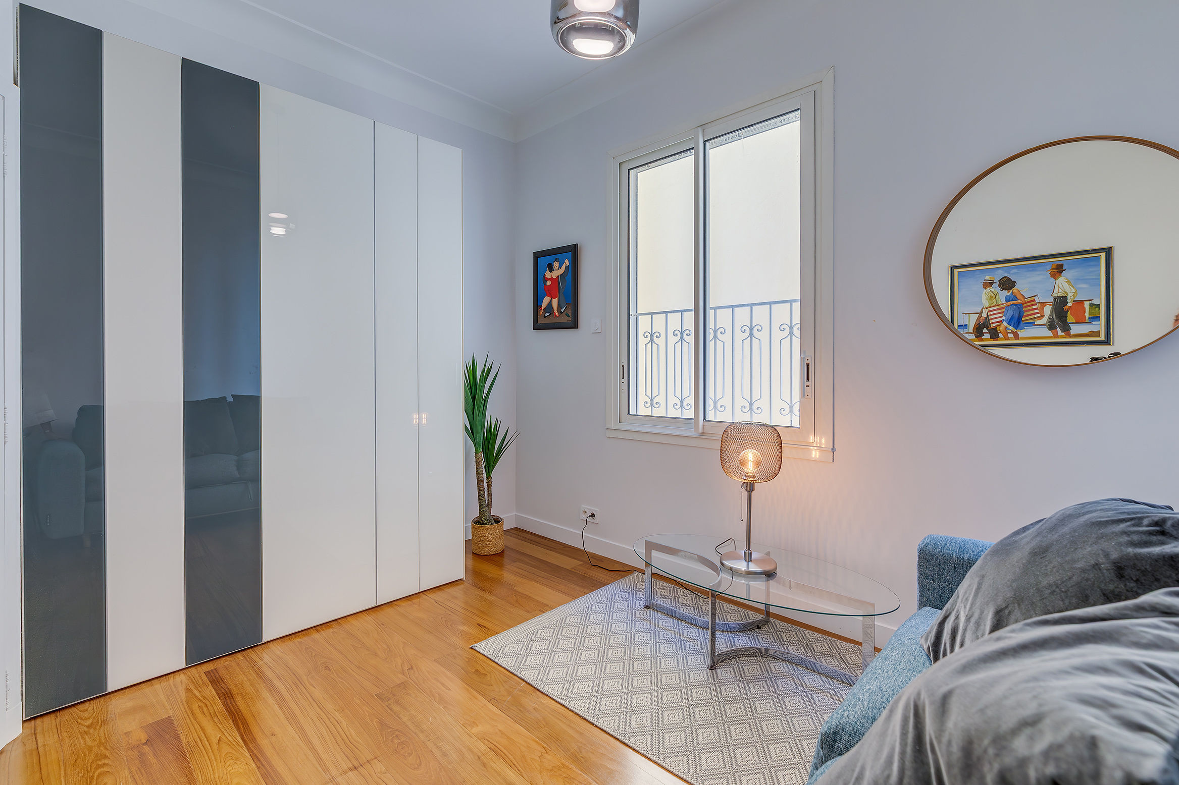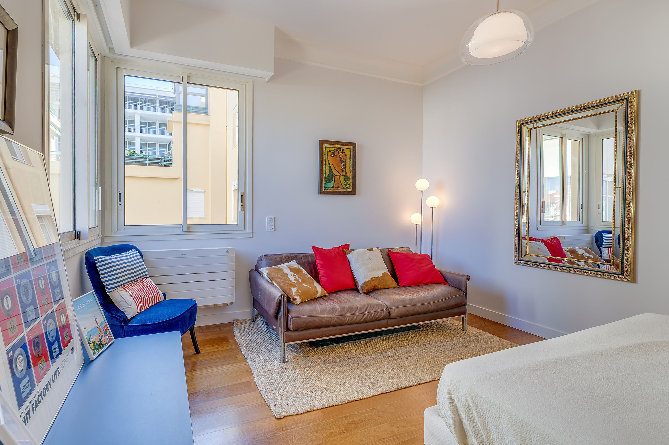 This superb 4-room, very bright, fully renovated apartment offers all the typical charm of Nice apartments. Contemporary furniture blends perfectly with its old-world charm.