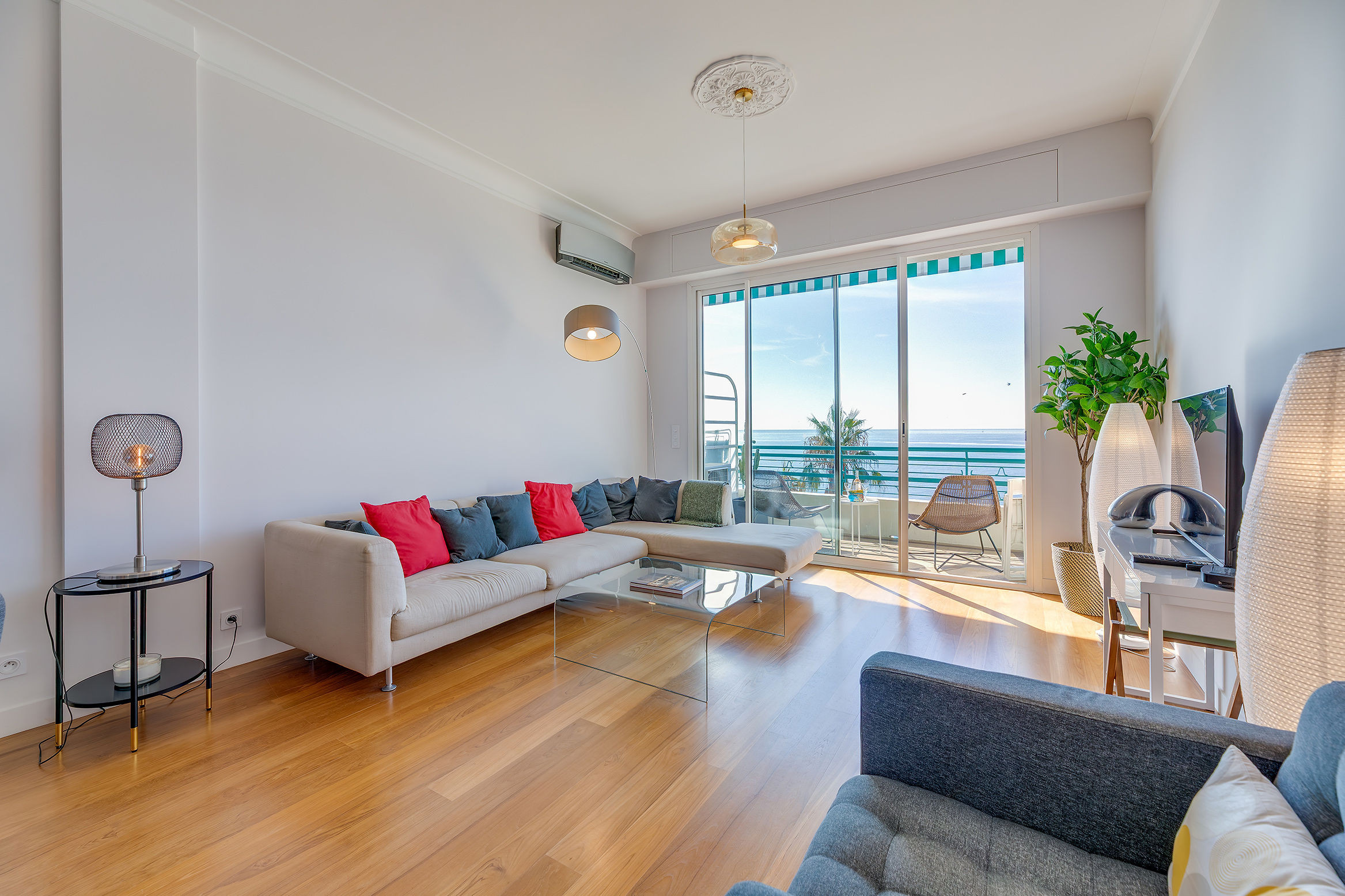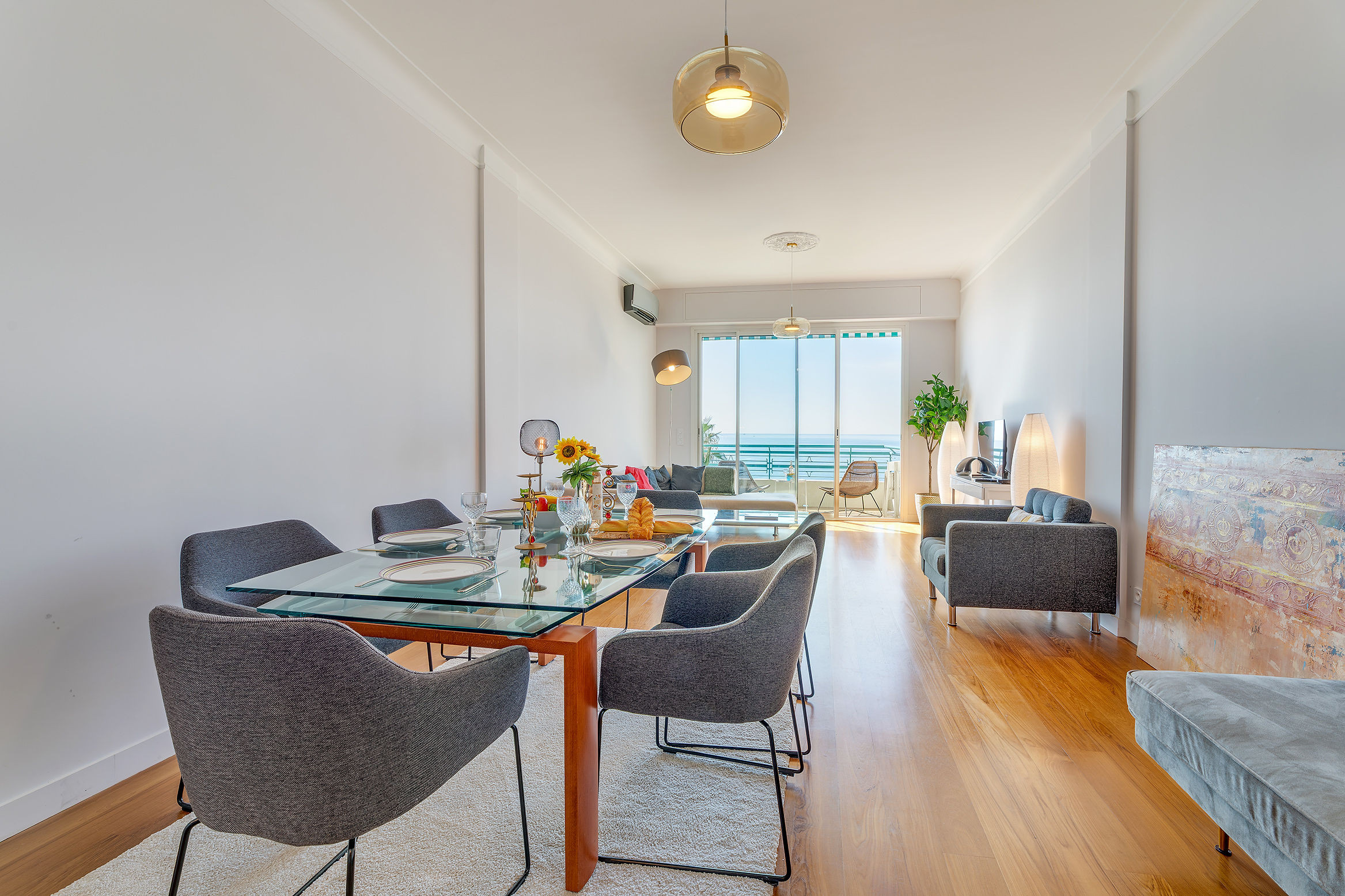 Magnificent 110 m2 apartment, on the 4th floor with a lift. Its panoramic view of the Promenade des Anglais and the Baie des Anges will enchant you!