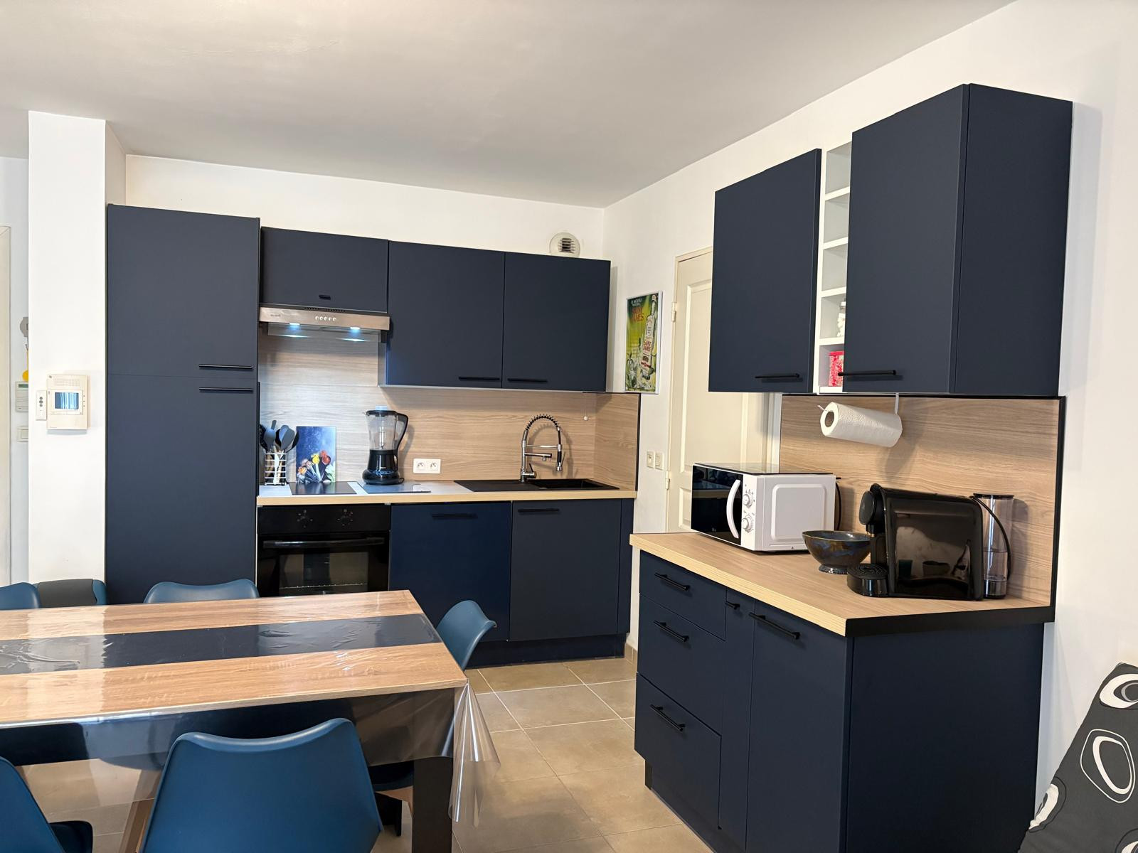 Modern style, practical storage and all the necessary equipment to cook easily.