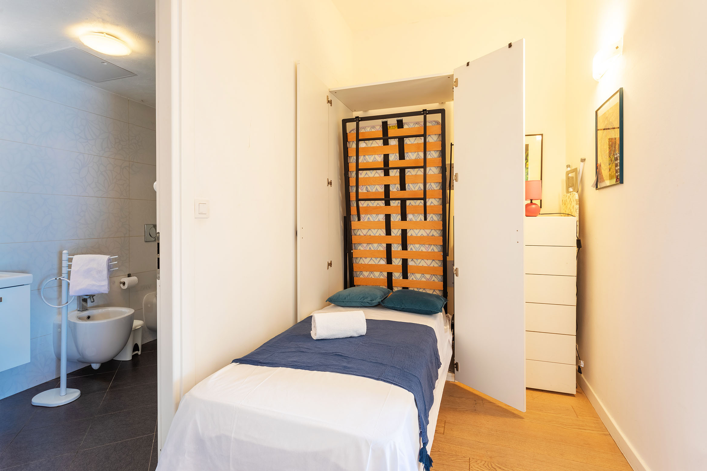 A bedroom with a window and sea view with a 160cm bed and 2 wardrobes, Another sleeping area with a fold-away bunk bed, ideal for 2 children. A bathroom with toilet, shower and bidet. Air conditioning - A security deposit of €700is collected directly by Riviera Holiday Homes via Swikly (secure credit card authorization, no charge is made). ⚠️ Not applicable to Airbnb bookings. - wifi - Sea view balcony - Pets not allowed and non-smoking.