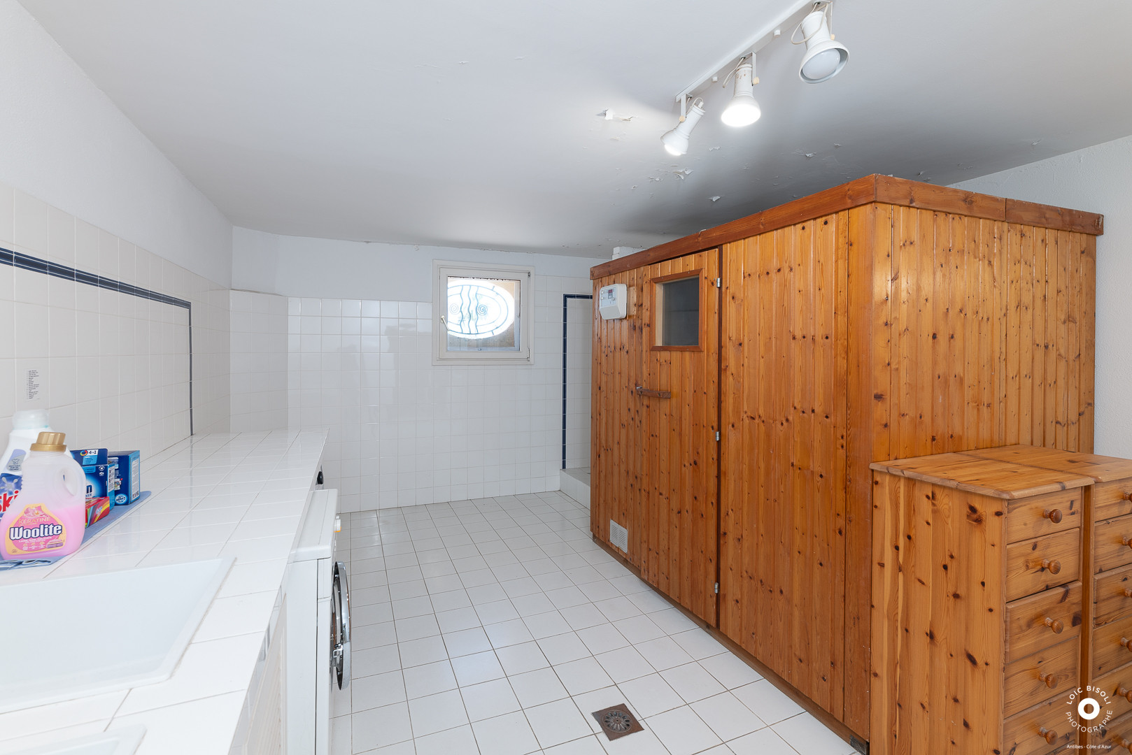 Undergound (accessible by the lift) laundry room (with washing machine, tumble dryer, iron and ironing table.) ans sauna.