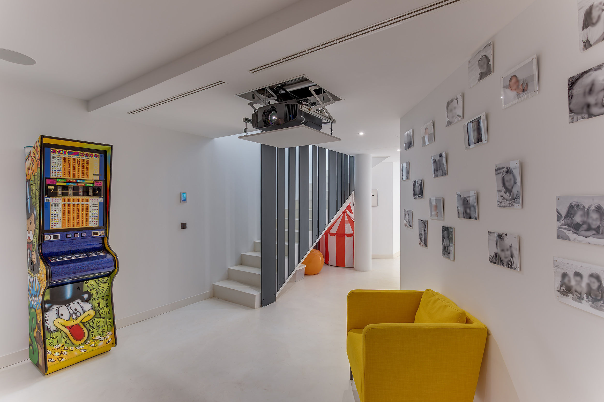 - A lift serves the different levels, facilitating access to the entire house.