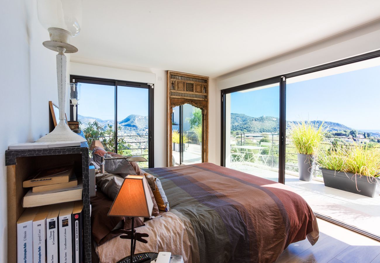 Located on the heights of West Nice, the SUNSET villa is a superb 300 m² property offering a view of the sea and the famous Bellet and Crémat vineyards. Facing south, with no overlooking neighbours, it extends over a 3000 m² plot and features a 15-metre heated infinity pool 🏊.