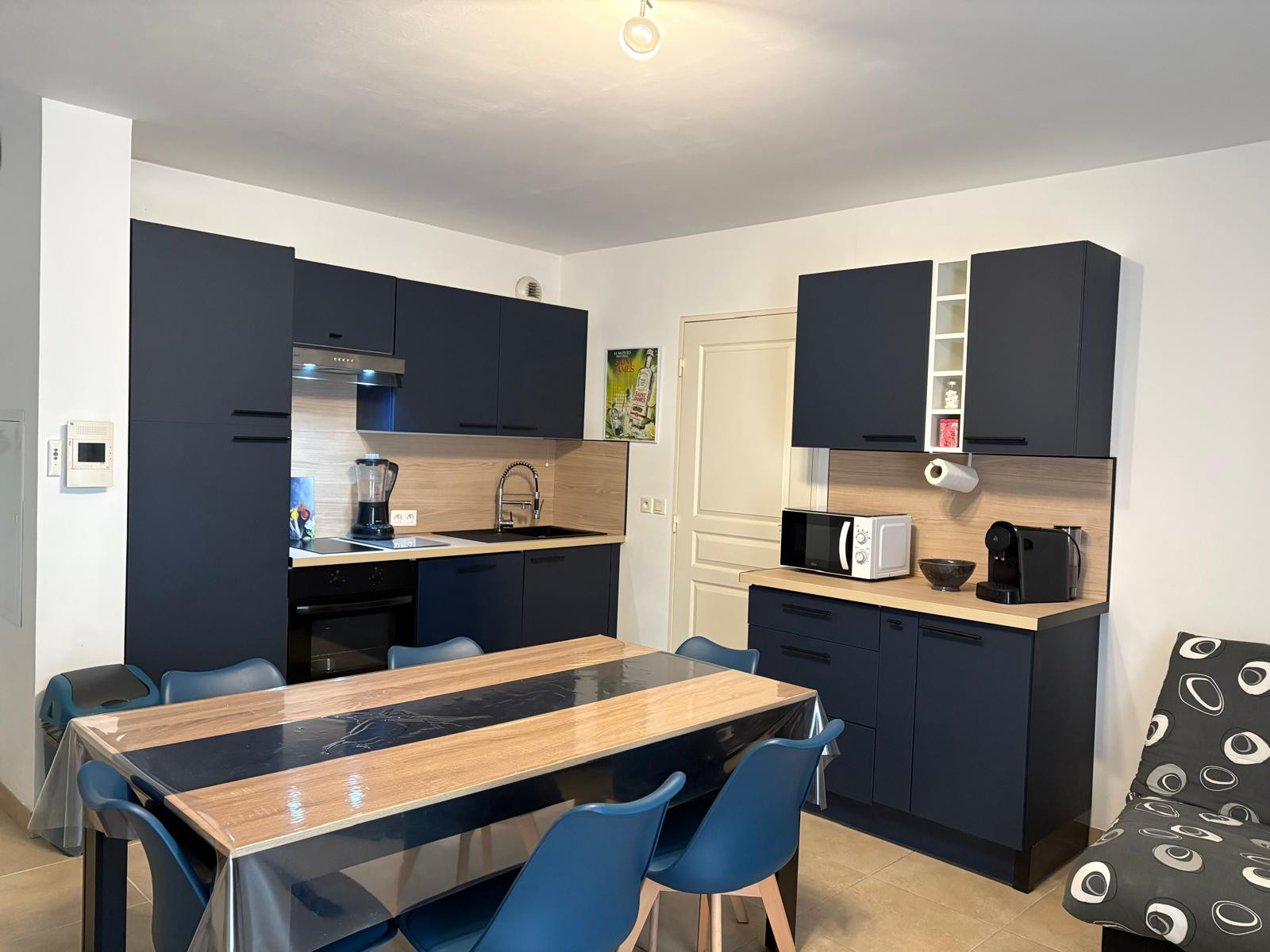 Style moderne, rangements pratiques et tous les équipements nécessaires pour cuisiner facilement.